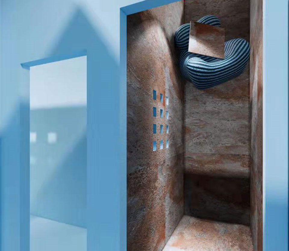 展位设计灵感源自地中美术馆,以独立空间的“秘密探索”,来唤起人们对于空间转换的感知。同时借由不同人生活场景转换表达人类感知的奇妙和复杂性。人们拥有自由意识,而秘密就会同时产生,设计师试图将那些未表达、来不及表达的化成了秘密空间存放在一起。「FARSIGHT 方向 X 秘密基地」,以软装+装饰材料的集合形式,传达狭小空间 + 冥想的新生活方式。在每一个独立的空间中透过不同场景转换的心里映射来改变观展人对生活的的感知。