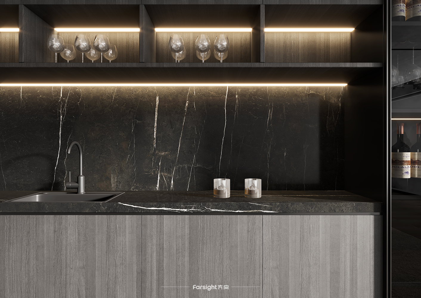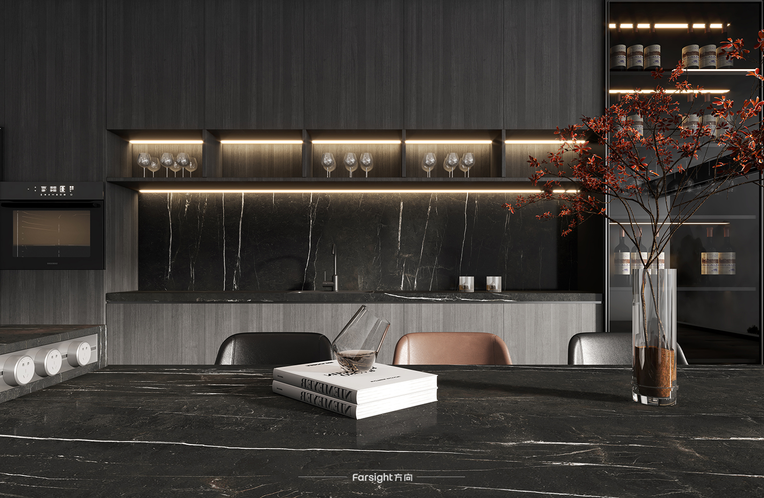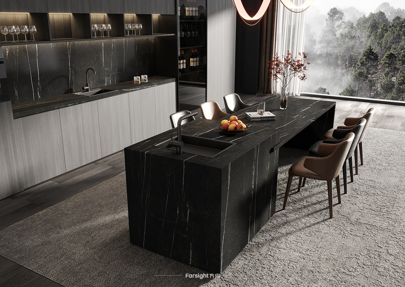 我们说黑色是灵动的,Acca艾卡系列以高贵的黑色为切入点,丝滑的纹理如同黑夜过去黎明乍现那一霎的冷艳,它厚积薄发、精贵明亮,别具一格的优雅野心呈现,容纳各式各样的表达方式,是强大又美好的生动体现。Acca系列的细哑表面精致细腻,1600x3200mm规格更适合针对台面使用,这一规格保证厚度在12mm,厚更坚实,实用性更强,而且最大限度地统一色坯,表里如一,效果呈现更为大气。