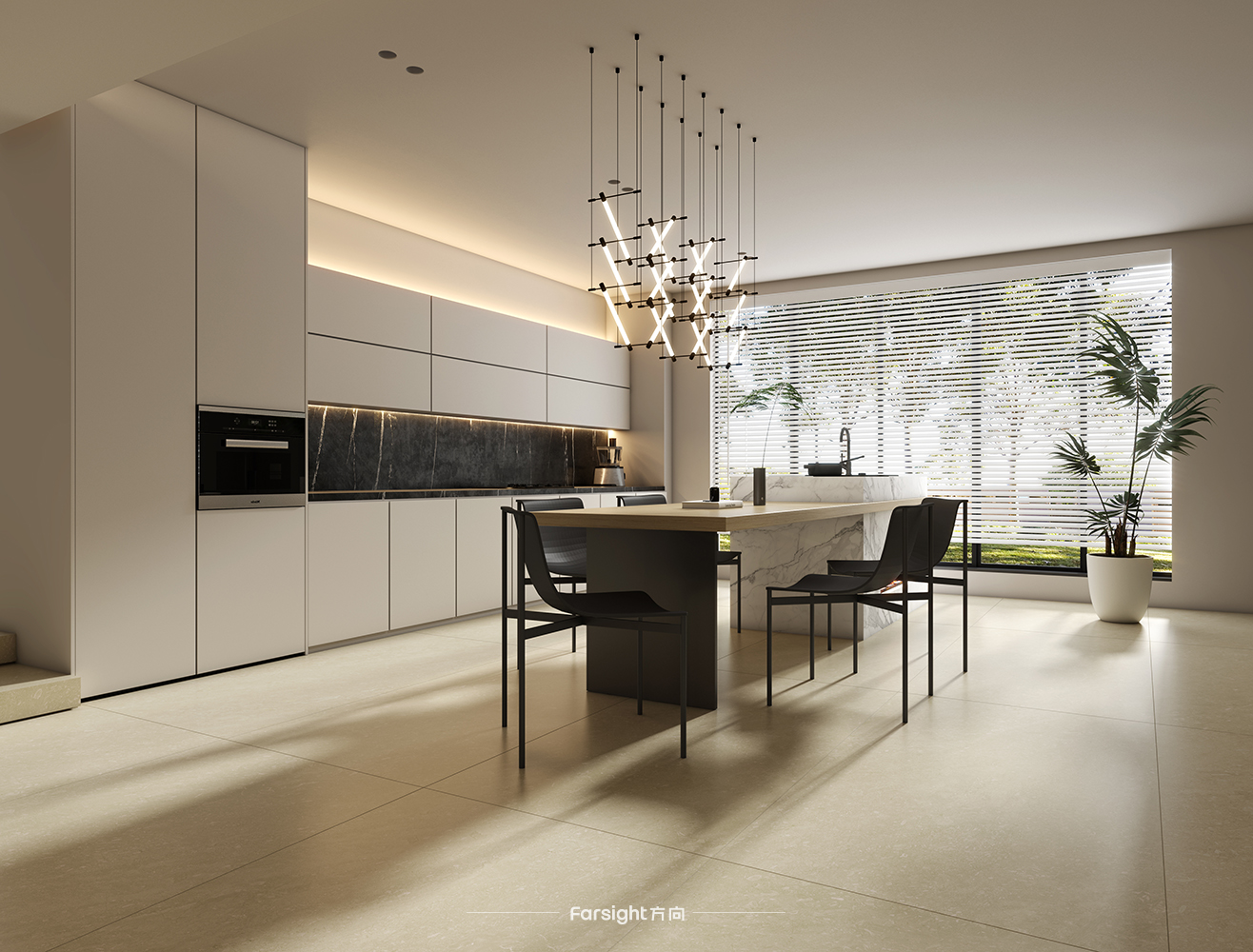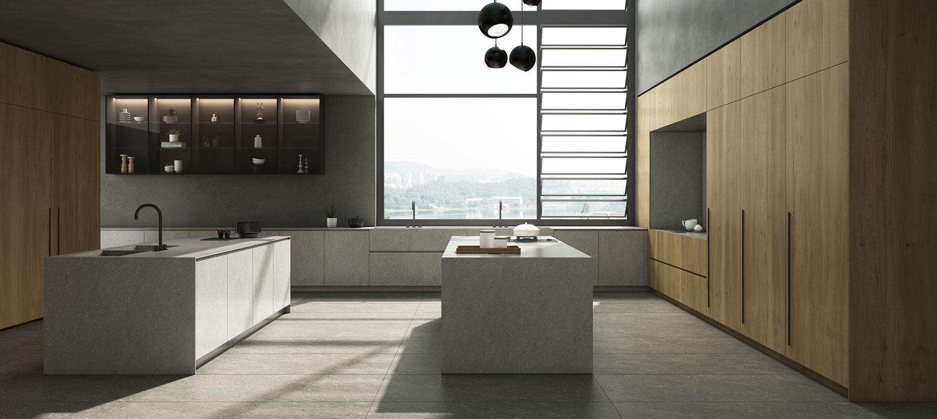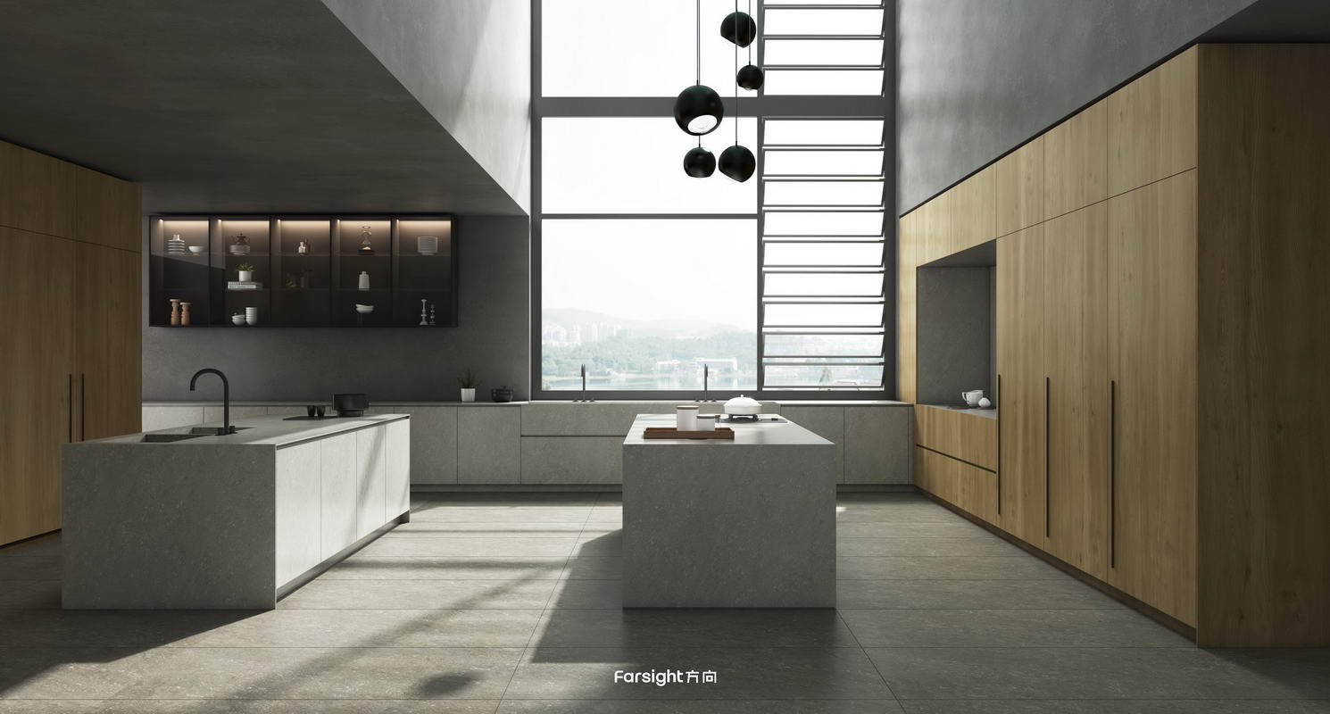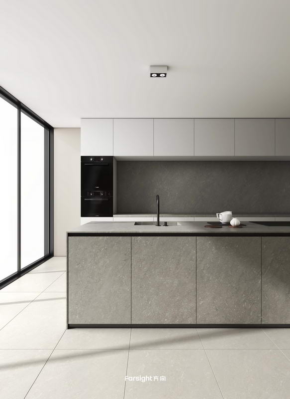 Ora奥纳系列以灰色调为主,浮现明暗有致的肌理,延续着利落干净的设计美学,极具个性与艺术感,令空间处处有型有款。它每一个考究的细节,都有着自己的温度与故事。拥有自然面工艺的Ora系列岩板比传统面要精致高级,900x2700mm的规格适合家装空间,3:1的比例,一片到顶,统一色感延伸空间视觉效果。