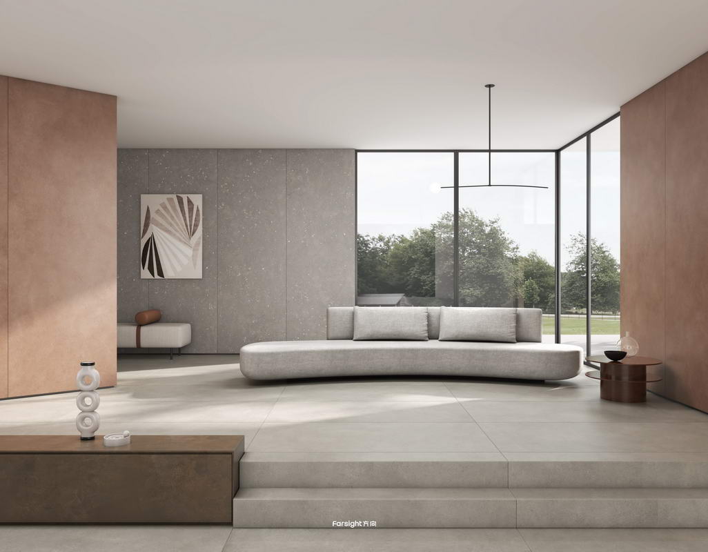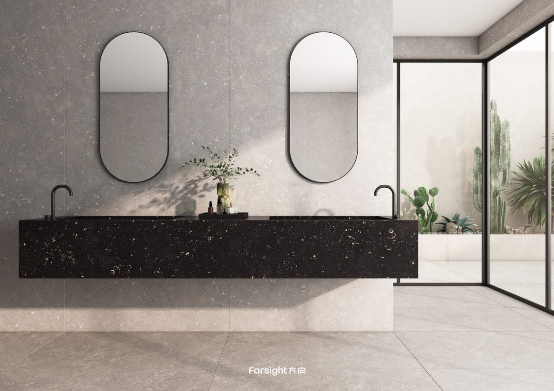 Cima系列灵感来自悠久历史的沉积熔岩,它拥有质朴与细腻丰富的纹理质感,表面经过精心筛选,以完美的比例将晶界和化石斑点用哑光和抛光结合在一起,浑然天成且富有层次感,符合人体视觉最佳舒适度。