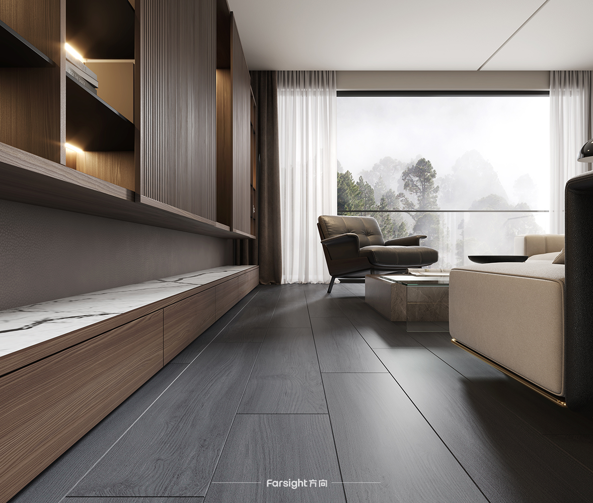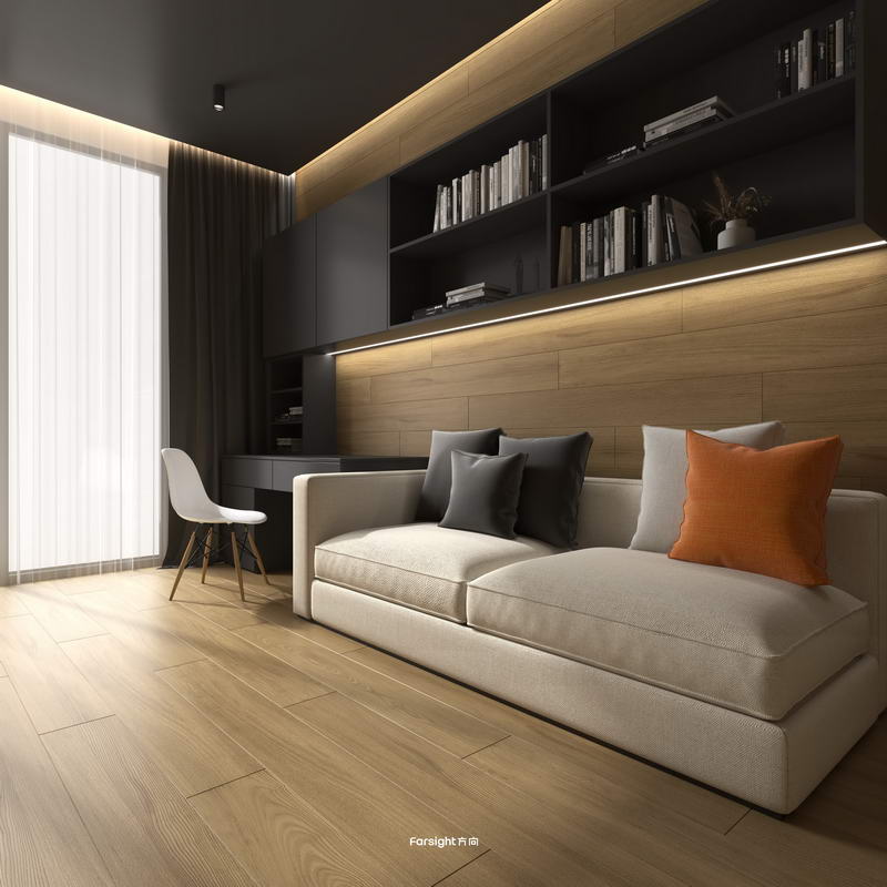 浮雕面工艺赋予了Elin系列十足的立体感,它更强的浮雕感能使砖面效果更贴近原材质,更大程度地还原了木头本身的色彩和纹理,满足家居设计中对木纹元素的不同需求。