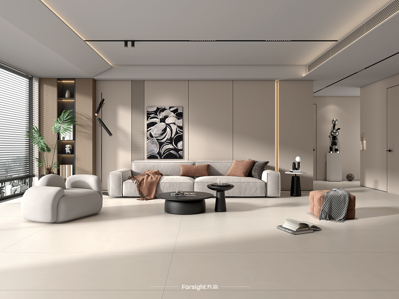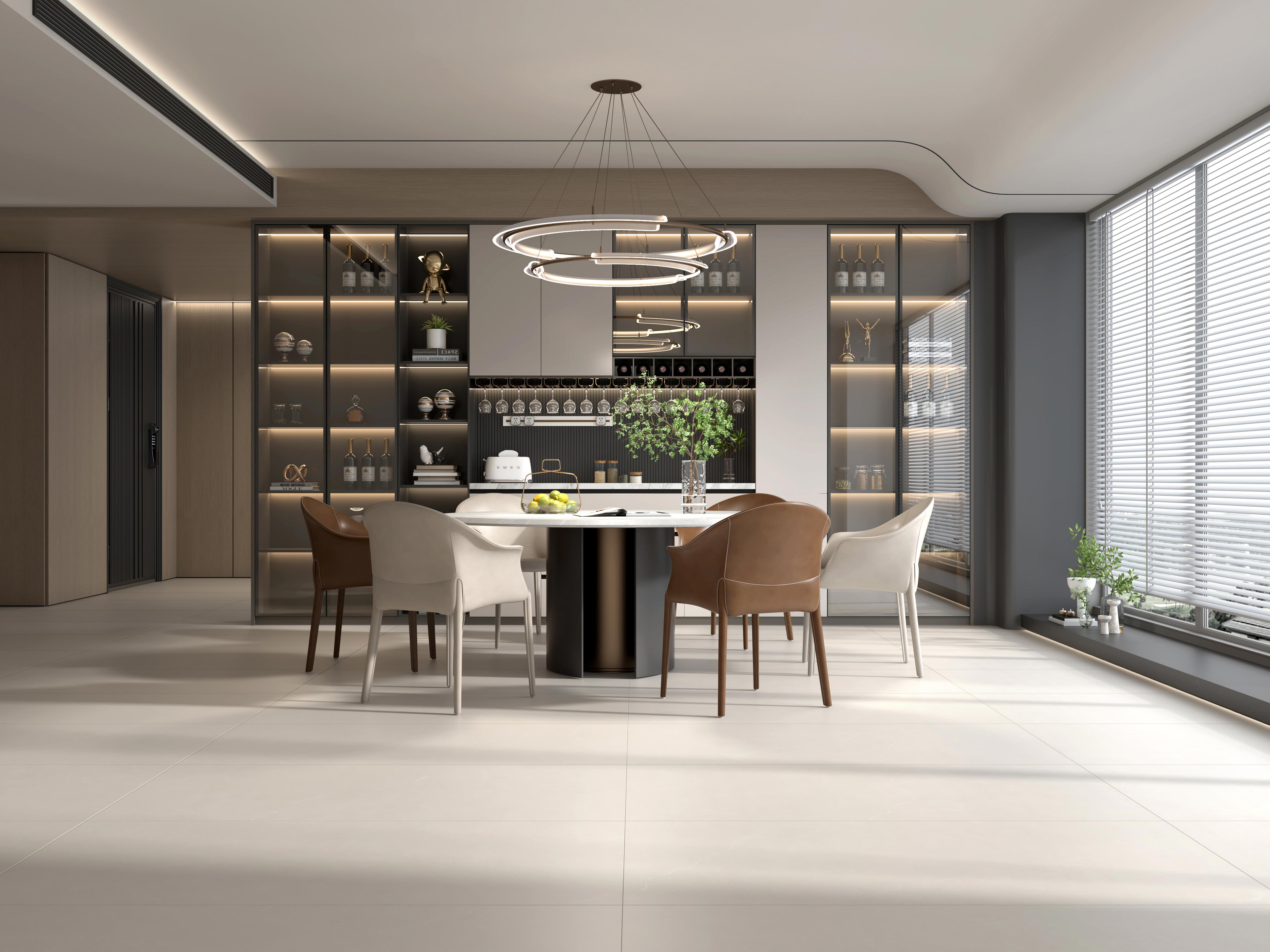 Verna低饱和的色调延伸视觉,润泽的光感静谧内敛,凸出肌理层次,尽显优雅氛围。源自稀有石材的脉络承载着艺术格调,质感于微理石的雕琢中沉淀,消弭生活与艺术的边界感,充满高级的复古气息。
